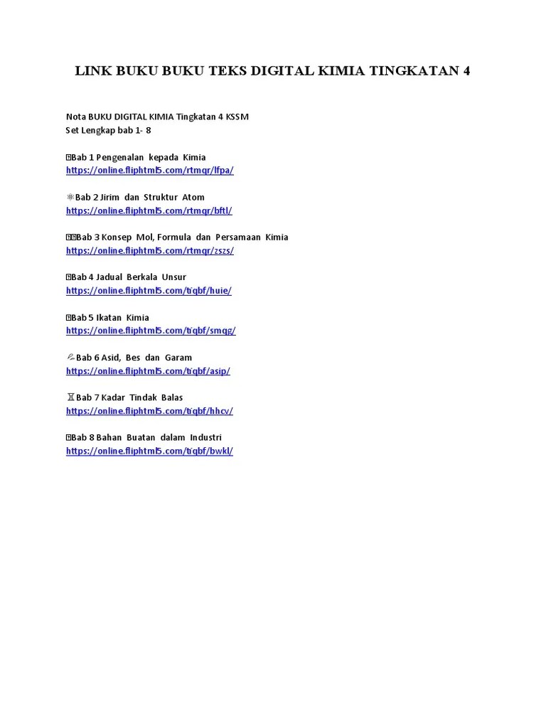 Buku teks kimia tingkatan 5 kbsm. Baca versi flipbook dari buku teks kimia tingkatan 4. Choose courier j&t, ship out by the same day. Buku teks digital asas (btda) kimia tingkatan 4 (empat). Sukatan terdiri daripada 4 tema, dengan 9 bab yang perlu . Selari dengan perkembangan pesat teknologi digital, kementerian pendidikan malaysia .